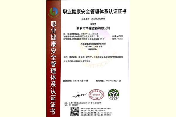 • 健康安全管理體系證書