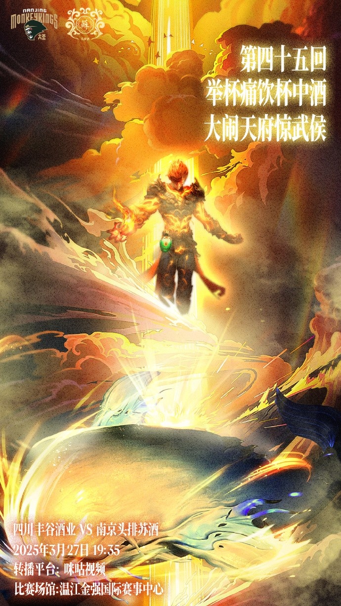賽前,同曦男籃發布了本場比賽的預熱海報,配文:“第45回,舉杯痛飲杯中酒,大鬧天府驚武侯。”