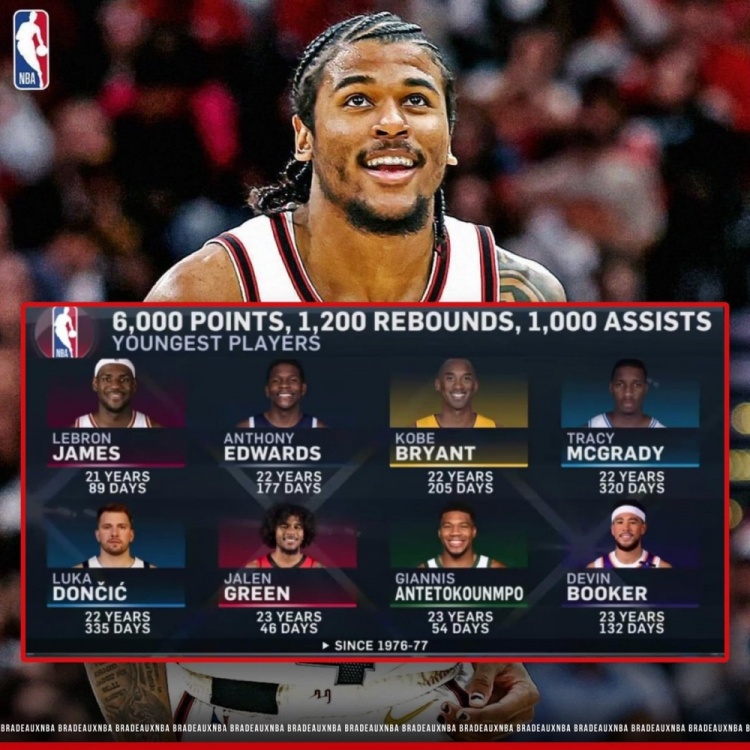 至此,杰倫-格林生涯得分、籃板、助攻數來到了6040/1283/1003,他成為了聯盟自1976-77賽季合并以來達成生涯6000分1200板1000助第六年輕的球員(23歲46天),具體如下: