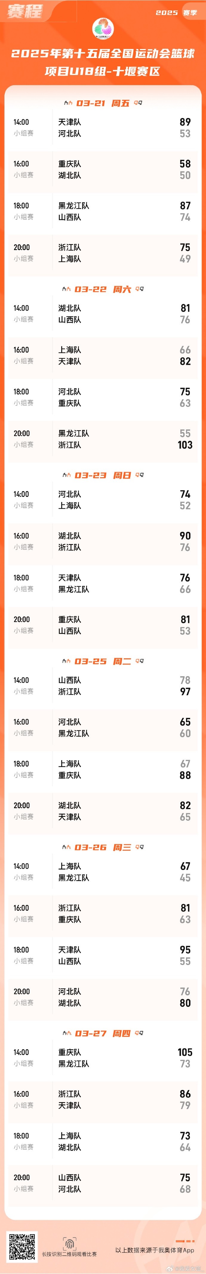 【湖北、重慶、浙江U18女籃挺進決賽圈】24場全運會U18女籃資格賽昨晚在湖北十堰全部落下帷幕,最終湖北、重慶、浙江U18女籃成功突圍,昂首挺進“十五運”決賽圈!