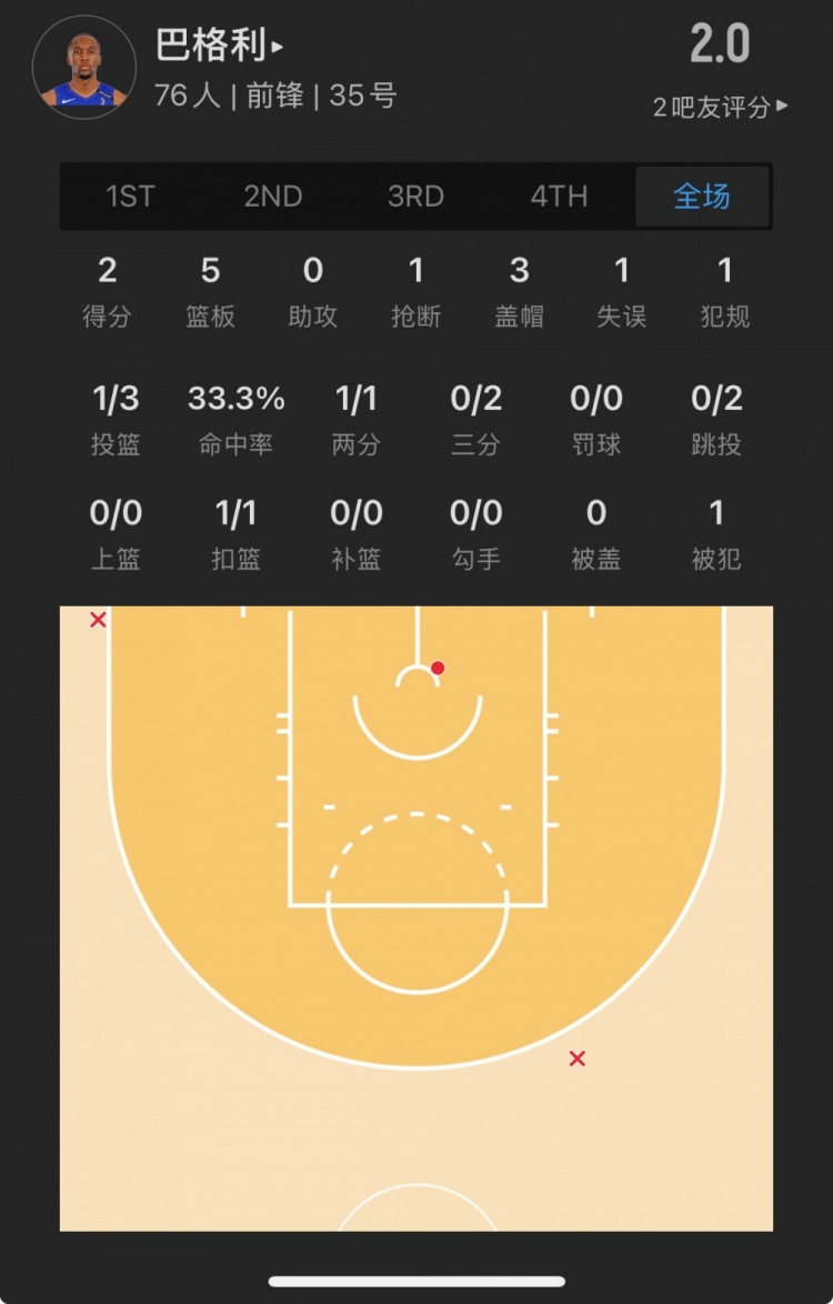 76人落選秀 馬庫斯-巴格利 登場18.3分鐘