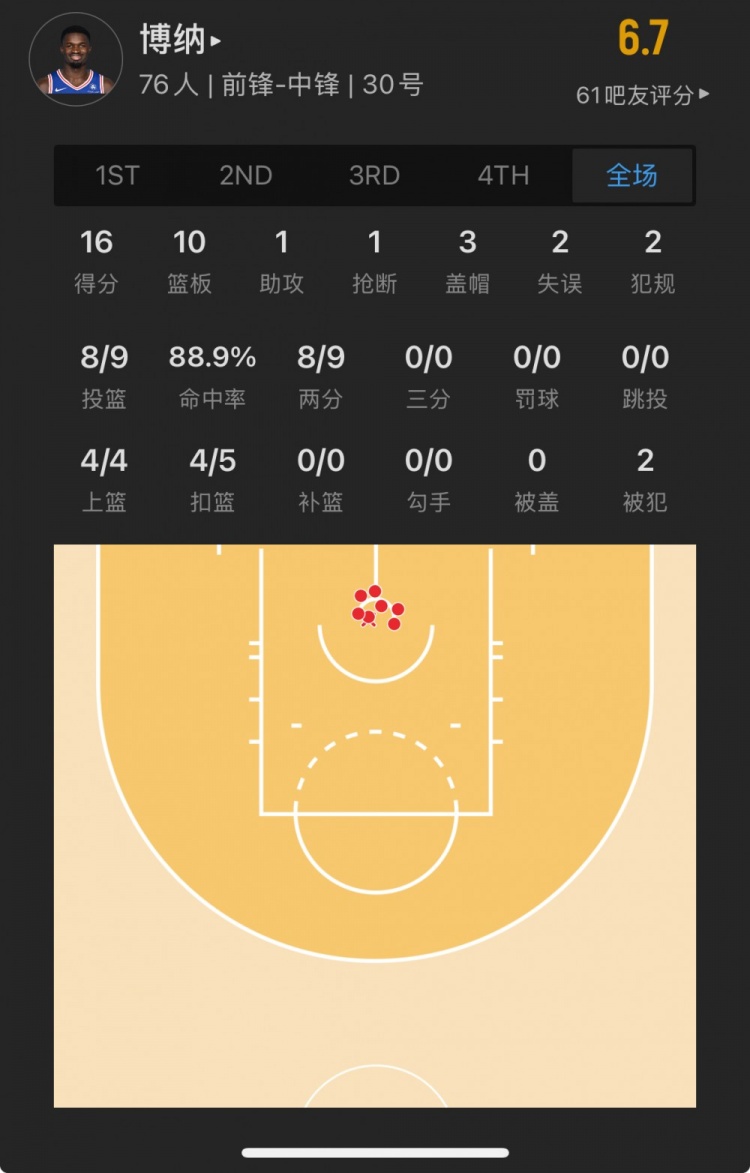 76人41號秀 阿德姆-博納 登場29.6分鐘
