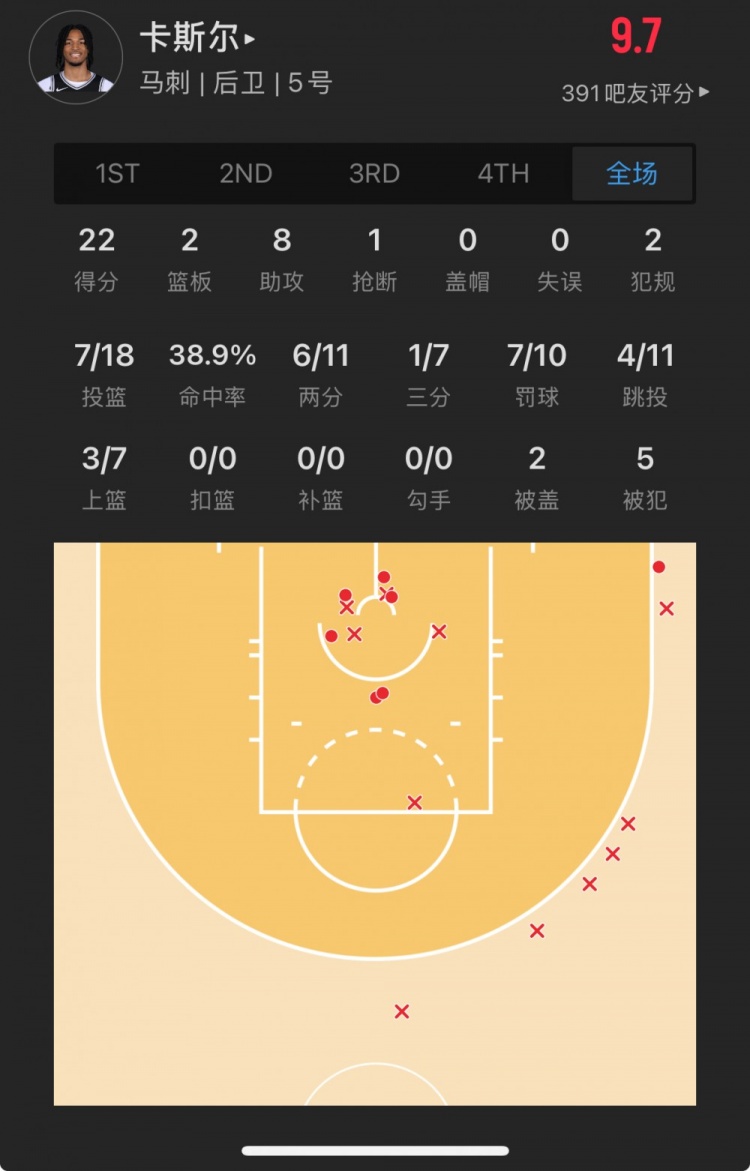馬刺4號秀 斯蒂芬-卡斯爾 登場29.5分鐘