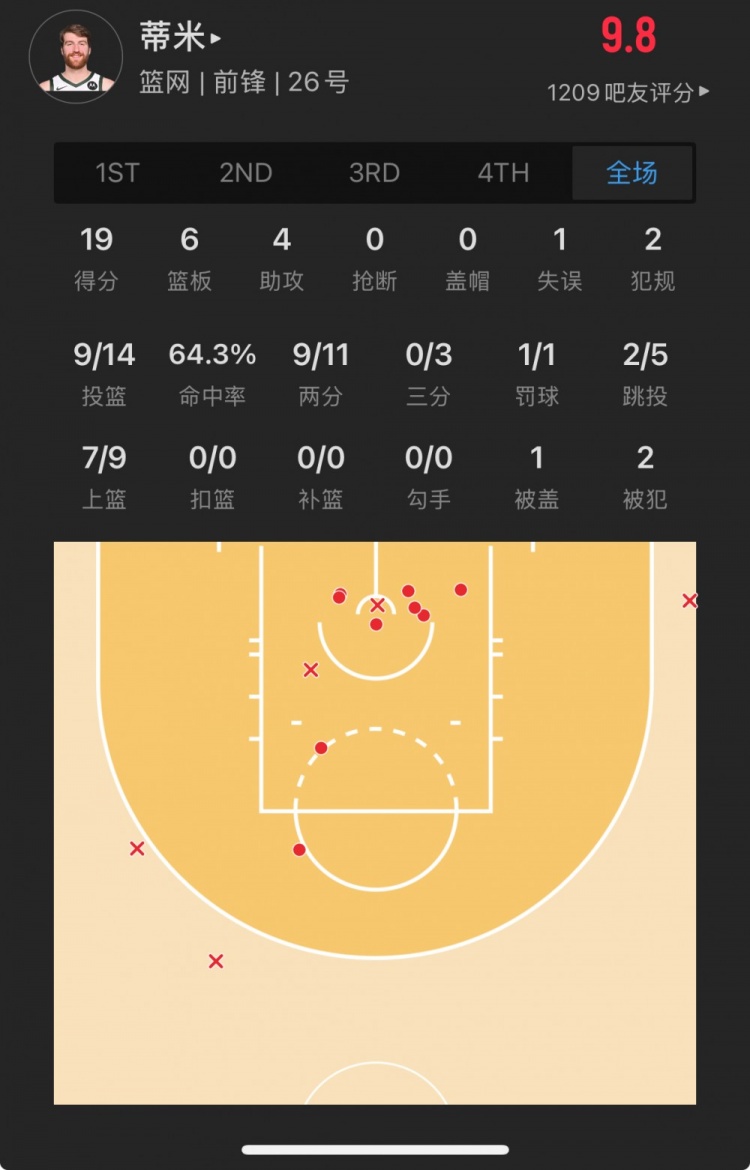 蒂米強攻上籃造成干擾球完成關鍵反超