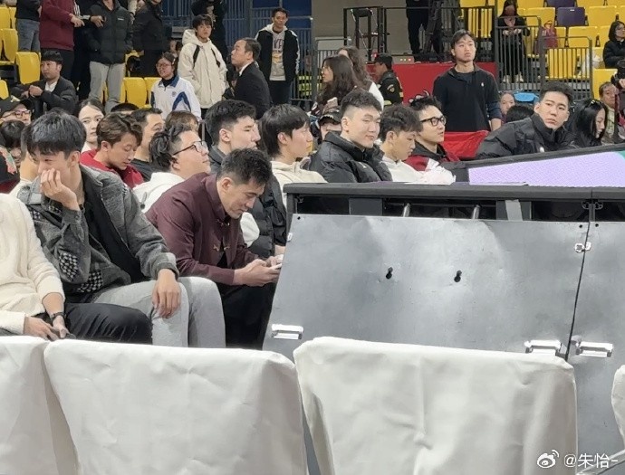 此前眼部受傷的郭艾倫、沒有通過體測的丁彥雨航也一同出現了在場邊觀戰。