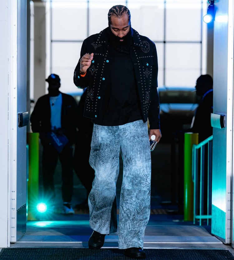 快船穿搭:哈登帥氣黑夾克+牛仔褲 小卡簡約一身黑 科菲短褲短袖
