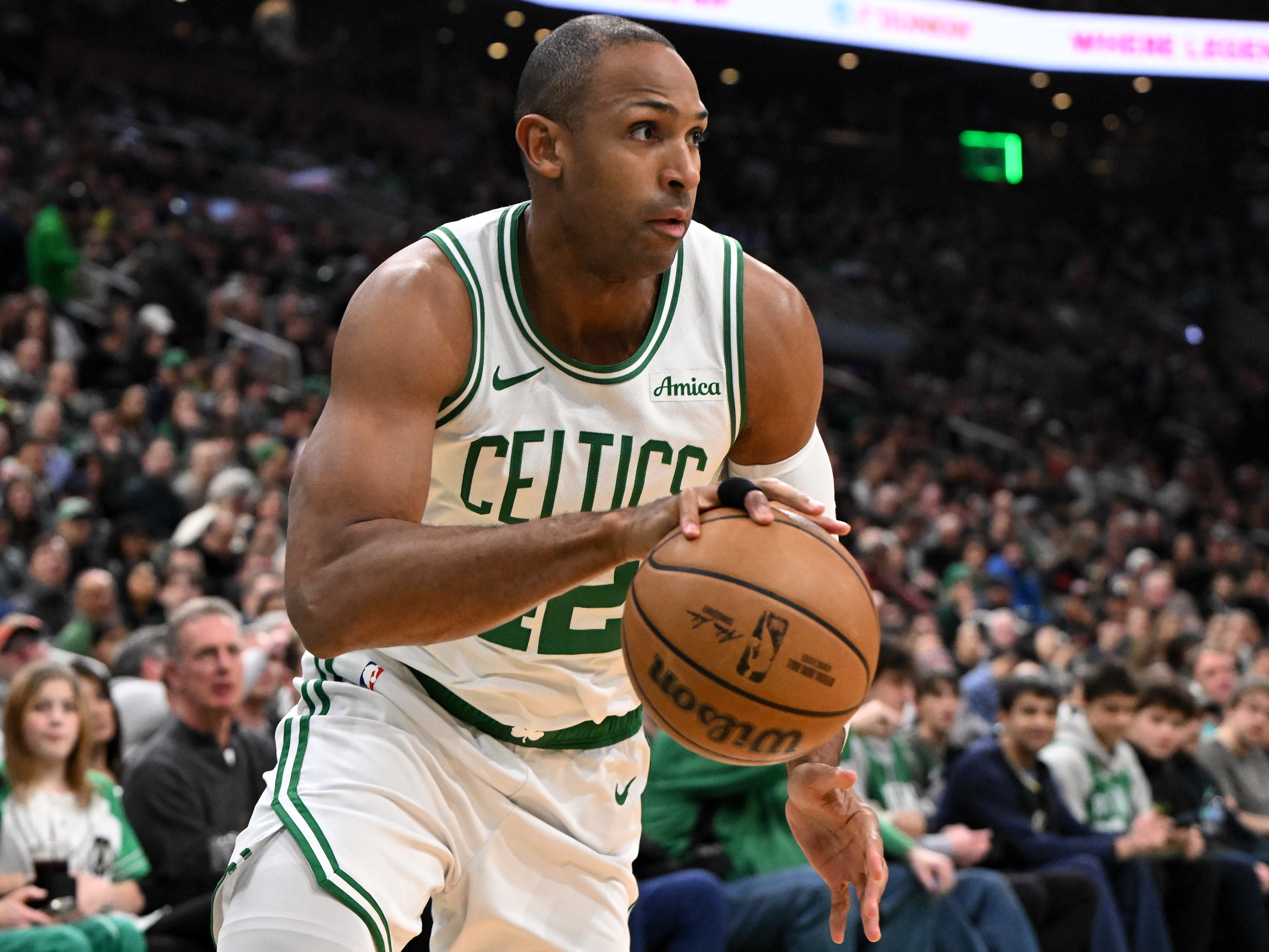 “他在防守端的作用,就像你所說的,我們對他的換防能力和守好自己的位置的能力感到非常放心,他讓對手難以得分。我是霍福德最大的粉絲。我愛這個家伙。”