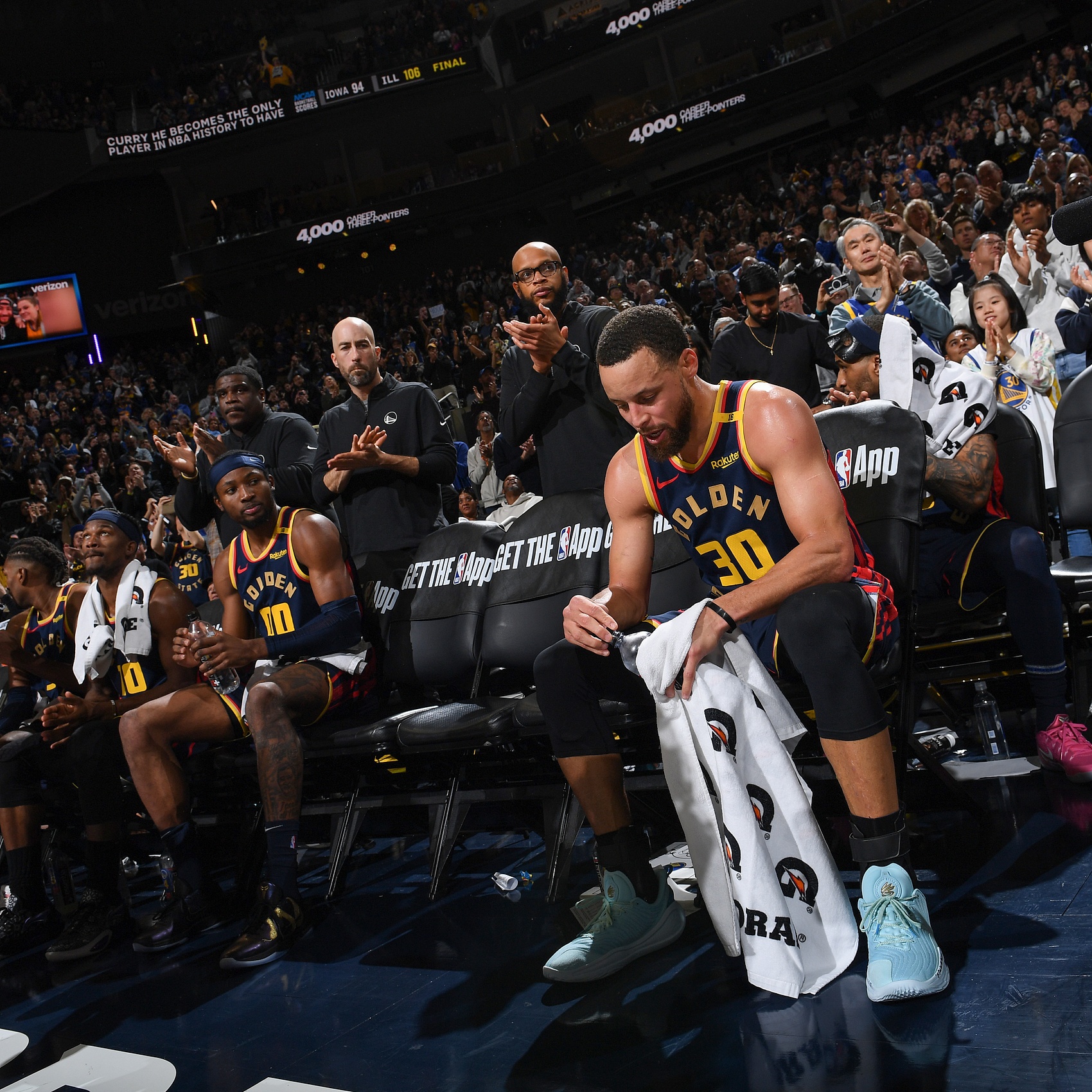 勇士當家球星斯蒂芬-庫里出戰30分鐘,投籃9中4,三分球6中2,得到11分5籃板2助攻1搶斷1蓋帽。