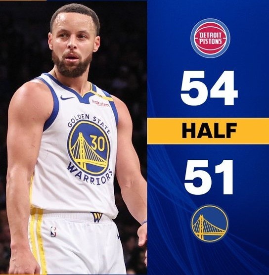 3月9日訊 NBA常規(guī)賽今天繼續(xù)進(jìn)行,勇士在主場(chǎng)迎戰(zhàn)活塞。半場(chǎng)結(jié)束時(shí),勇士51比54落后。