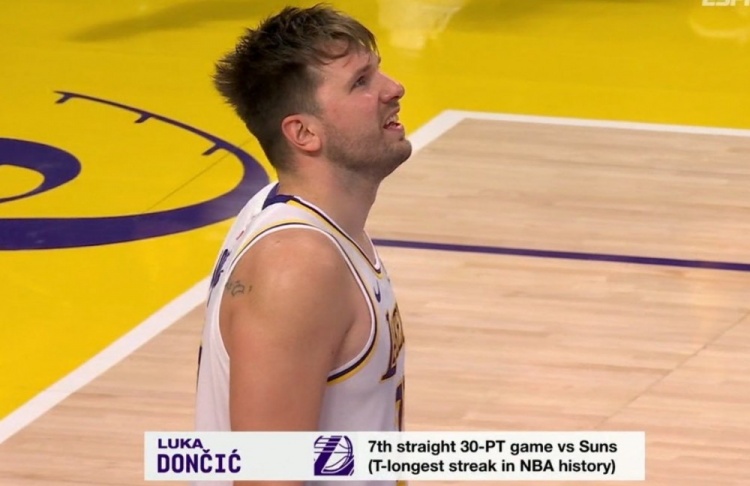 據ESPN統計,這是東契奇連續7場在面對太陽的比賽中打出得分30+,追平NBA歷史最長場次紀錄。