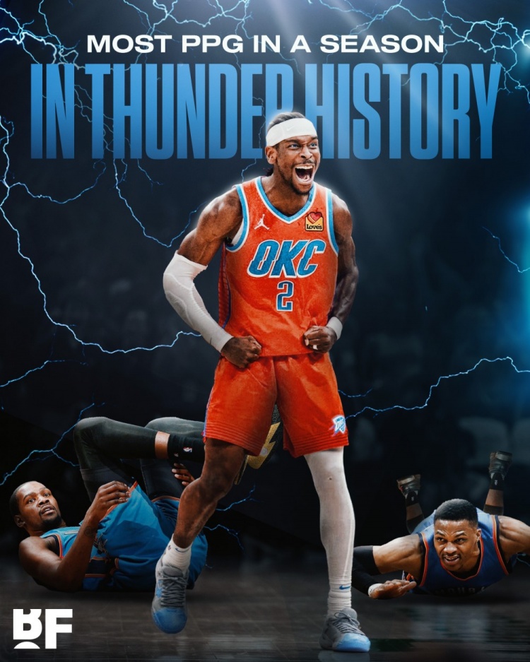 預(yù)定MVP?SGA場(chǎng)均得分達(dá)到33分 超越MVP賽季的KD威少排隊(duì)史第一