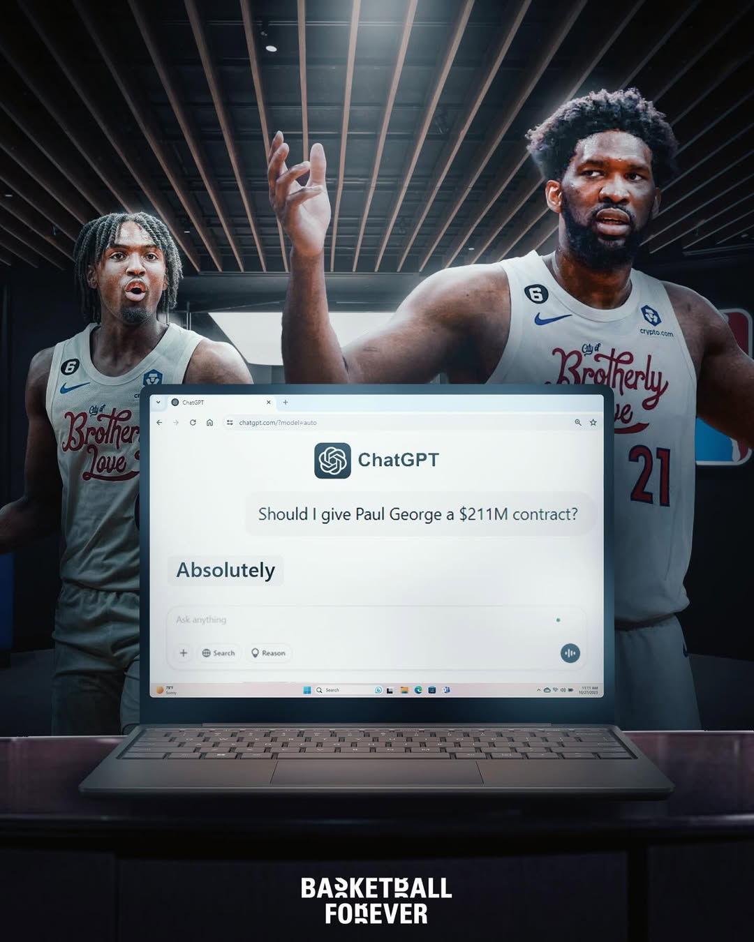 喬治的合同是人工智能簽的?76人總經理:我們用AI來幫助決策事務