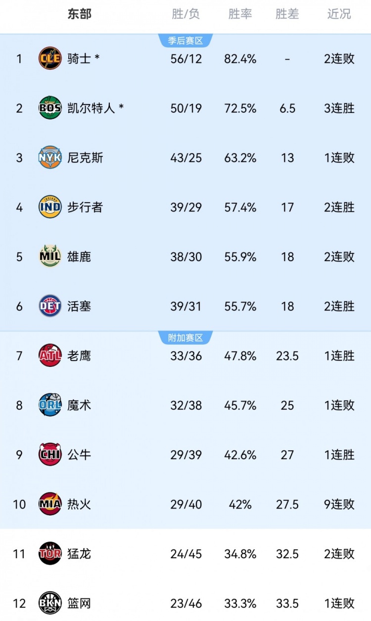 至此,熱火遭遇了9連敗。而他們排名仍在東部附加賽區,仍領先第11的猛龍5個勝場。