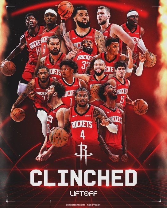 此戰之后,火箭的戰績來到了45勝25負,本賽季他們至少能打附加賽,為此火箭官推專門制作了海報,慶祝這一時刻。