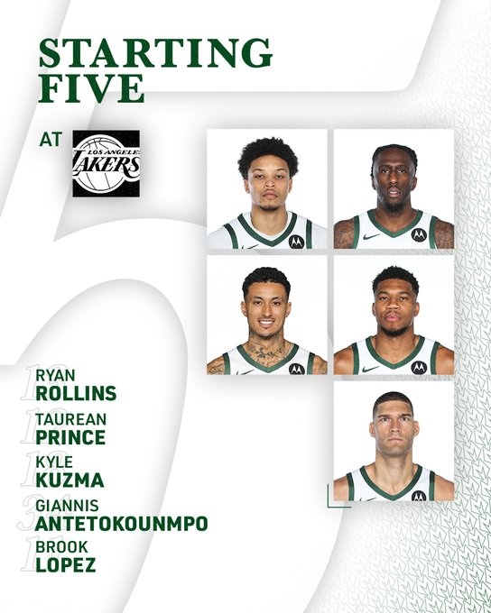 雄鹿本場比賽的首發陣容已經出爐,分別是:羅林斯、普林斯、庫茲馬、字母哥、大洛。