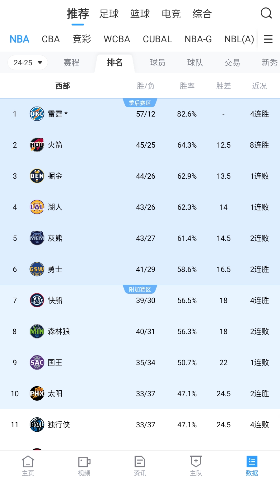雷霆是歷史第二年輕的一號種子 僅次于去年的雷霆