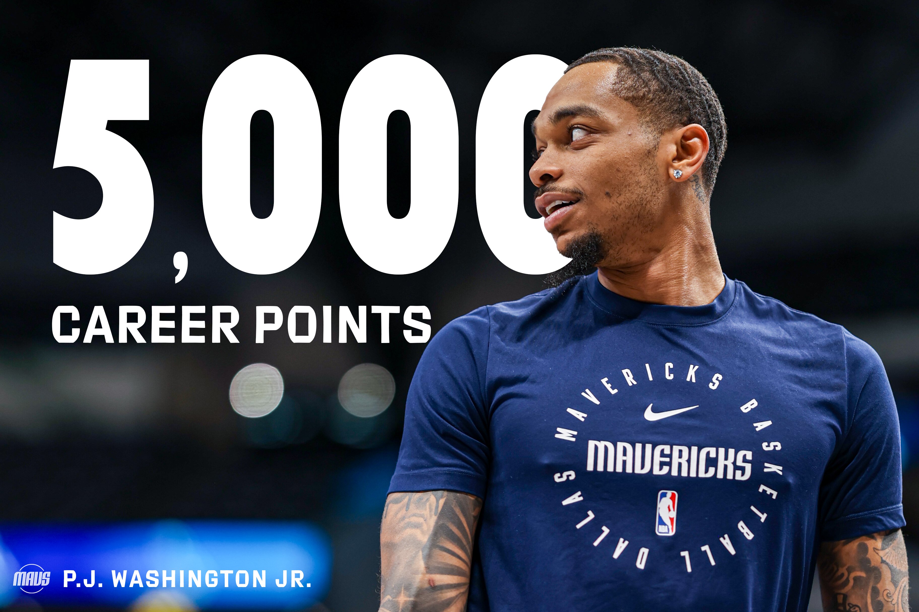 比賽進行到第一節(jié)10分02秒時,PJ-華盛頓一記底角三分命中,個人生涯得分突破5000分。