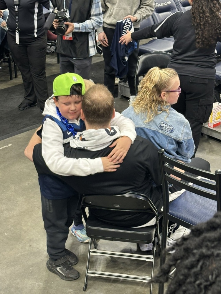 本場比賽,森林狼老將喬·英格爾斯12歲的自閉癥兒子雅各布,在家人的陪同下來到了現場觀看父親的比賽。森林狼主教練貼心地將英格爾斯安排進了首發,這也是自2021-22賽季,英格爾斯首次首發,當時他還在爵士隊。