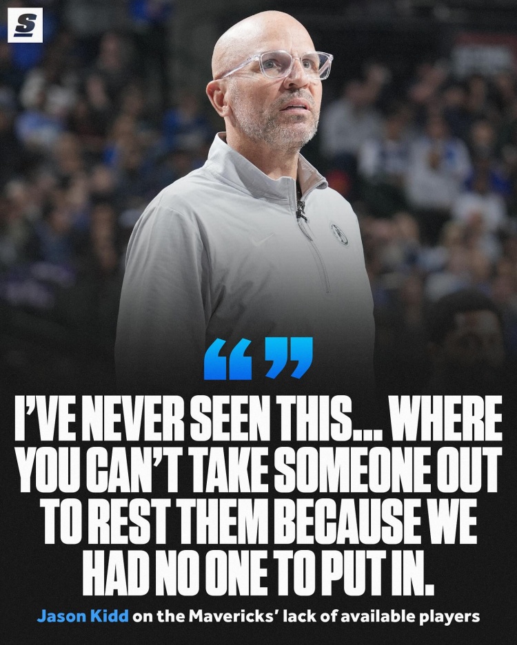 談到球隊遭遇大面積傷病潮,基德無奈表示:“我從來沒有見過這種情況,從來沒有經歷過這樣的比賽,因為我們沒有人可以上場,所以不能讓球員下場休息。”