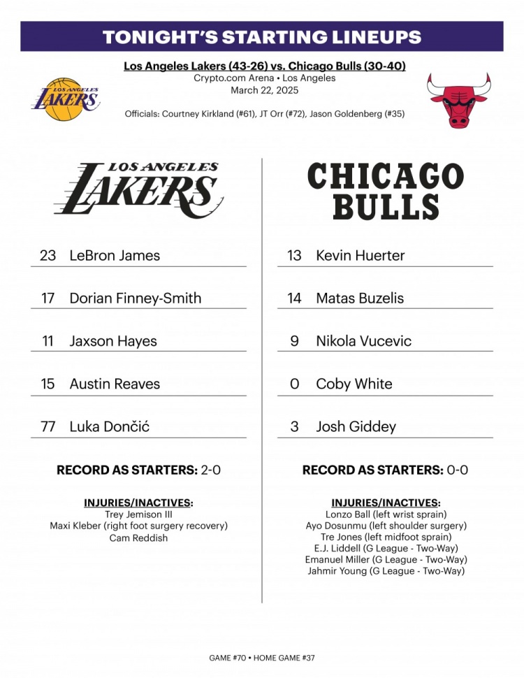 3月23日訊 上午10點(diǎn)半,湖人主場迎戰(zhàn)公牛。
