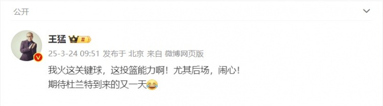 王猛在個(gè)人微博上寫(xiě)道:“我火這關(guān)鍵球,這投籃能力啊!尤其后場(chǎng),鬧心!