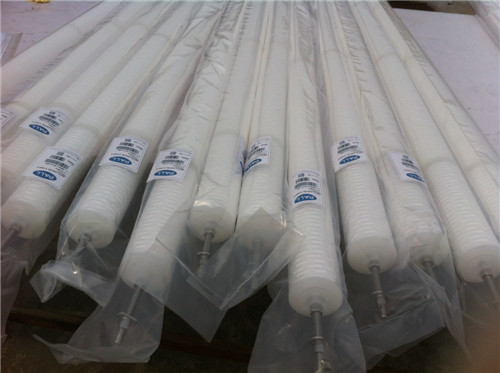 大流量水濾芯應(yīng)用于保安過濾器反滲透系統(tǒng),常見于各類電力系統(tǒng)、化工系統(tǒng)以及污水處理,液體凈化、過濾設(shè)備配套,使用范圍相當(dāng)廣泛,因過濾不斷優(yōu)化波紋折疊工藝40英寸標(biāo)準(zhǔn)流量可達(dá)到70m3/H,60英寸可達(dá)到110m3/H,造價(jià)低,更換方便,已經(jīng)在替換絕大部分的保安過濾器中的熔噴濾芯與折疊濾芯,受到了一致的好評。