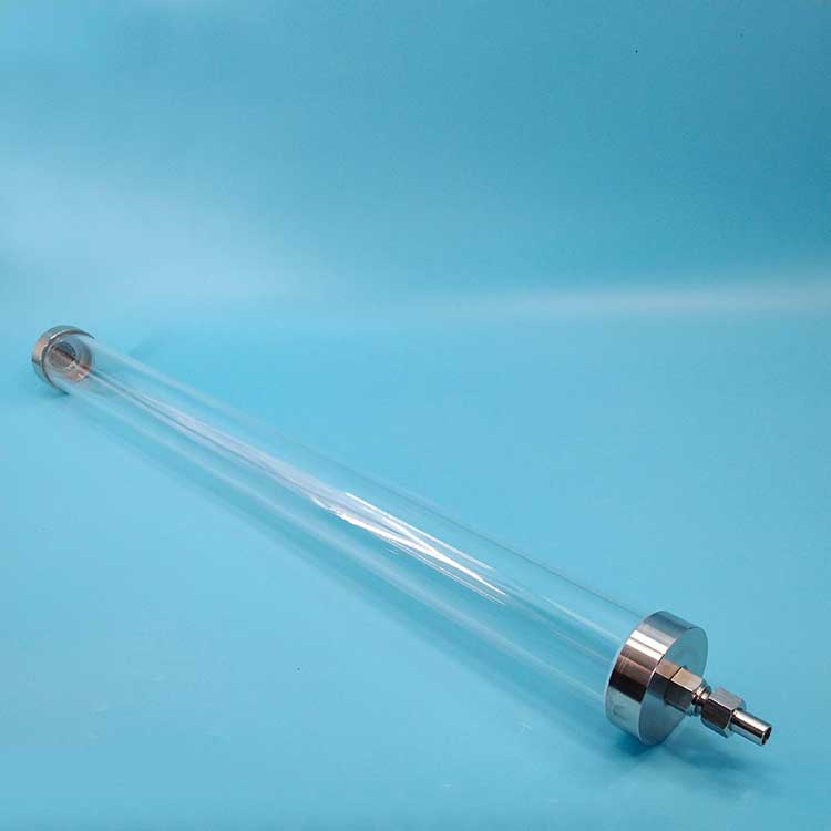 實驗室用交換柱: 一般用玻璃制造,柱長度和柱直徑之比(L/D)大約為10~30,柱上端一般裝塞子,下端是用燒結的玻璃砂板,也可以用玻璃毛、帶孔的瓷板、不銹鋼板,耐腐蝕的塑料網、布、玻璃布等作為離子交換柱的支座。