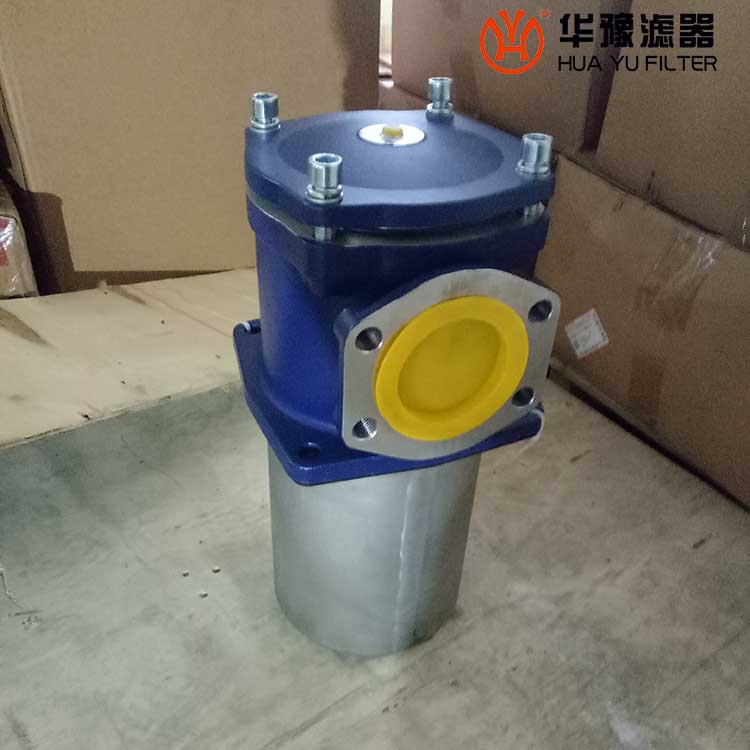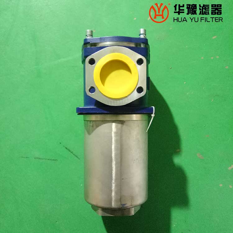 該過濾器的濾芯采用化纖過濾材質,具有過濾精度高,通油能力大,初始壓力損失小,納污量大等優點,并裝有壓差發訊器及旁通閥。當濾芯堵塞到進出油口壓差為0.35MPa時,便發出開關信號,此時應更換濾芯。如果不能馬上停機或無人來更換濾芯,裝在濾芯上部的旁通閥會自動開啟,以保護系統。