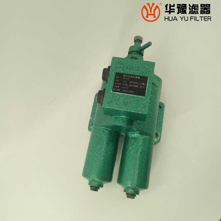 每一濾芯組件由濾器蓋、濾芯套筒、濾片及濾片圈等組成,濾器蓋頂部裝有放氣閥,供排出濾器內(nèi)腔的空氣用。 濾片套在濾芯套筒上,是濾器的主要過濾元件,由濾網(wǎng),支承網(wǎng)及波紋隔盤等組成,濾網(wǎng)的網(wǎng)目數(shù)由用戶根據(jù)需要選用。轉(zhuǎn)換閥體是由鑄鋁鋁合金制成的椎體,與閥孔研磨配合,閥體上鑄有上下兩油道孔,上油道孔一端通濾芯上方油腔,一段通濾器出口,下油道孔一段通濾芯腔,一段通濾器進(jìn)口,當(dāng)轉(zhuǎn)換閥迅速從一極限位置轉(zhuǎn)至另一極限位置時,閥體將一濾芯腔的通路關(guān)閉,而將另一濾芯腔的通路打開,此時,壓力油從濾器進(jìn)口流入濾芯腔,經(jīng)濾網(wǎng)過濾后的清潔油經(jīng)上方油腔從出口流出,達(dá)到濾清油液的目的。轉(zhuǎn)換閥體軸端頭上的箭頭指向接通的濾芯腔的一邊。