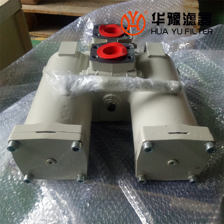 工作時一只濾筒通油,另一只濾筒不通油備用。當工作濾筒的濾芯堵塞至壓差發訊器壓力指示值為0.5MPa時,發訊器發訊,此時應及時打開壓力平衡閥、轉動換向閥啟用備用濾筒(換向閥轉動到位后關閉壓力平衡閥)。再只需旋開螺塞放完被堵塞濾筒內的油液,再旋下筒體,就可更換已堵塞的濾芯。如因故未能及時切換換向閥啟用備用濾筒,導致壓差持續上升至旁通閥開啟壓力0.6MPa時,旁通閥會自動開啟,以避免由于壓力繼續上升,濾芯破裂造成再污染。但此時油液未經過濾對系統安全造成極大危害,應盡可能避免旁通閥被開啟。