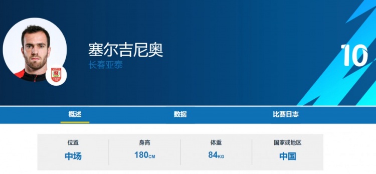 但在塞爾吉尼奧個人的資料當中,中足聯官網尚未及時更新,目前顯示的依然是他上賽季的資料。
