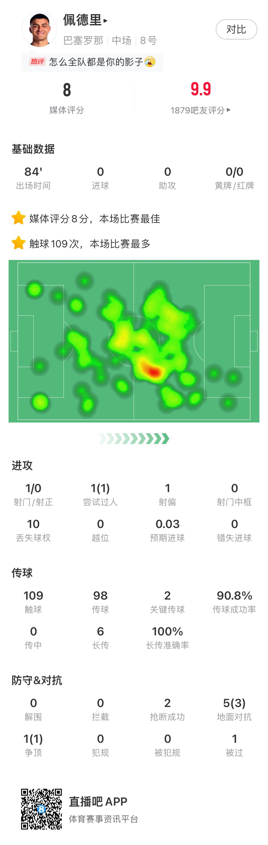03月28日訊 國際比賽日后,巴薩補賽3-0擊敗奧薩蘇納,佩德里延續“大師級”表現,109次觸球,98次傳球90.8%成功率,2次關鍵傳球,6次長傳100%成功率,2次搶斷成功。