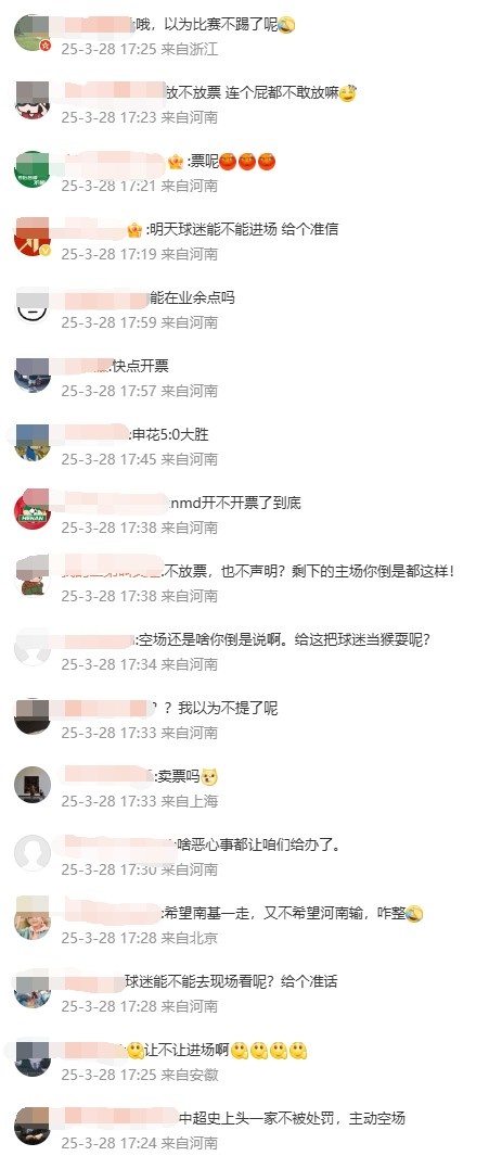 3月28日訊 本周六晚間,河南隊將在主場迎戰上海申花,不過這場比賽的門票遲遲沒有銷售,球隊也沒有對此做出解釋。賽前一天,河南隊球迷越發不滿。在球隊官博評論區,球迷們發出了很多的質問。