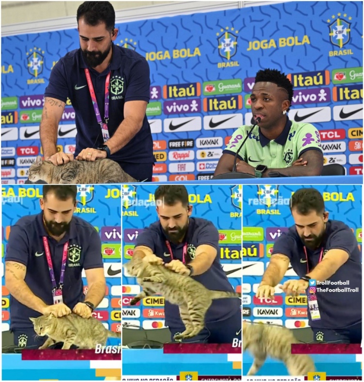 這是2022年12月8日,維尼修斯參加新聞發(fā)布會,一只貓貓被新聞官無情扔走~自此巴西一蹶不振……