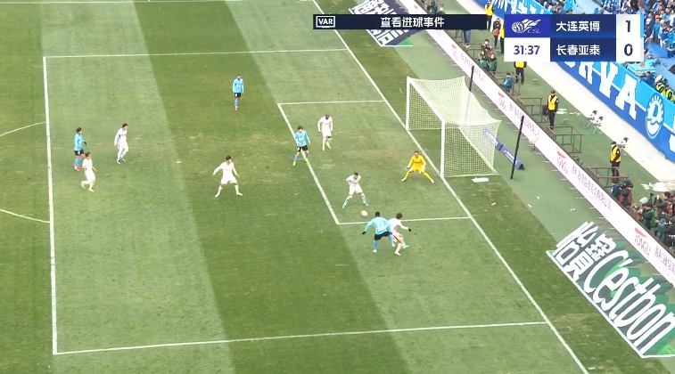 19歲朱鵬宇中超處子球!大連英博1-0領(lǐng)先長(zhǎng)春亞泰,馬萊萊助攻