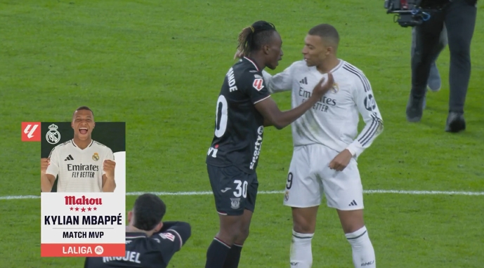 3月30日訊 西甲第29輪比賽,姆巴佩梅開二度,幫助皇馬主場3-2擊敗萊加內(nèi)斯,他當選本場比賽最佳球員。