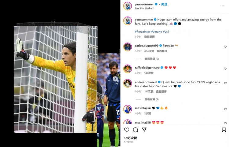 神撲救主!索默社媒曬照慶祝:全隊做出巨大努力,讓我們繼續前進