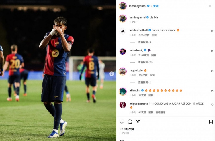 亞馬爾還通過社媒曬出自己的慶祝照,并配文:“bla bla”,似乎是在回擊近期對他的質疑。