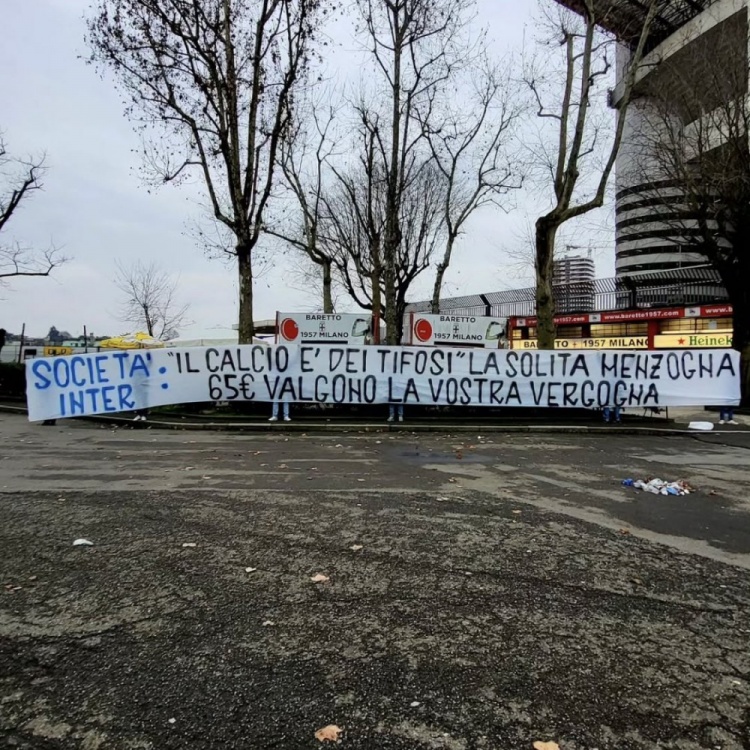 票價上漲&現場球迷顯著減少,國米死忠拉橫幅:65歐票價太可恥!