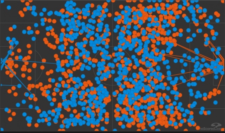 對比之下,馬競的足球哲學(xué)則更加偏向于在穩(wěn)定防守后,完成的中路控制及推進保障,這通過他們傳遞的路線圖也能夠看出,中場的銜接對馬競來說可是太重要了,能不能順暢的過了中線,將會決定他們接下來向前推進的效率。對此,后腰的作用格外重要。