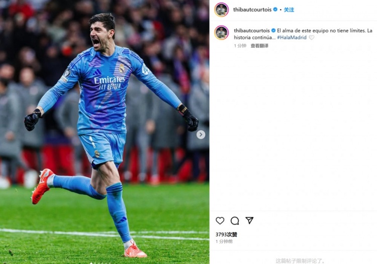 對老東家單場7撲救!庫爾圖瓦社媒曬狂奔慶祝照:故事還在繼續…