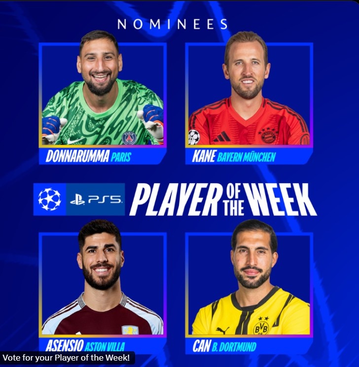 歐冠官方本輪最佳球員候選:凱恩&多納魯馬&阿森西奧&埃姆雷-詹