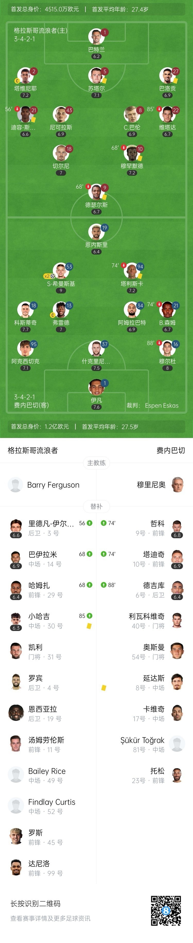 3月14日訊 3月14日訊 北京時間3月14日4:00,歐聯杯1/8決賽次回合,格拉斯哥流浪者坐鎮主場伊布羅克斯體育場迎戰費內巴切。上半場,塔利斯卡假摔染黃,希曼斯基凌空掃射破門。下半場,塔利斯卡頭球造險,希曼斯基再入一球扳平總比分。常規時間結束,費內巴切客場2-0,總比分3-3格拉斯哥流浪者,比賽進入加時賽。