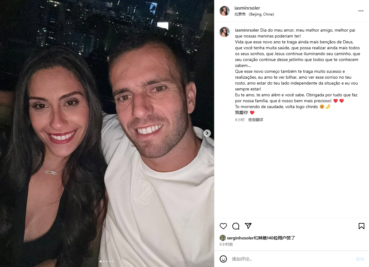 嫂子好!塞爾吉尼奧妻子中葡雙語告白:超想你中國人,我愛你??