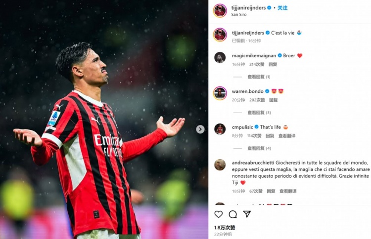 邁尼昂、邦多、普利西奇等多位隊友也現身評論區互動。