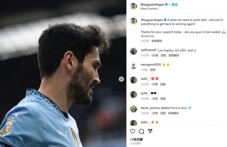 京多安表示:“我們需要汲取本場(chǎng)平局的教訓(xùn),并且在此后竭盡全力再次爭(zhēng)奪勝利。感謝球迷們今天的支持,我們兩周后再見(jiàn)!@曼城俱樂(lè)部”