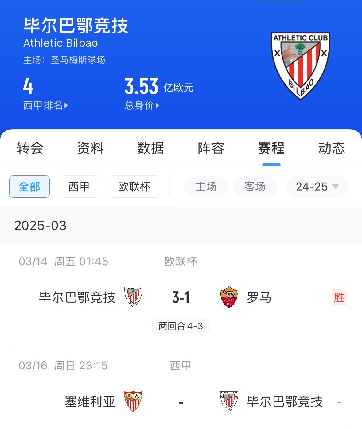 2025年03月14日 歐聯杯1/8決賽次回合 畢爾巴鄂競技vs羅馬 全場錄像