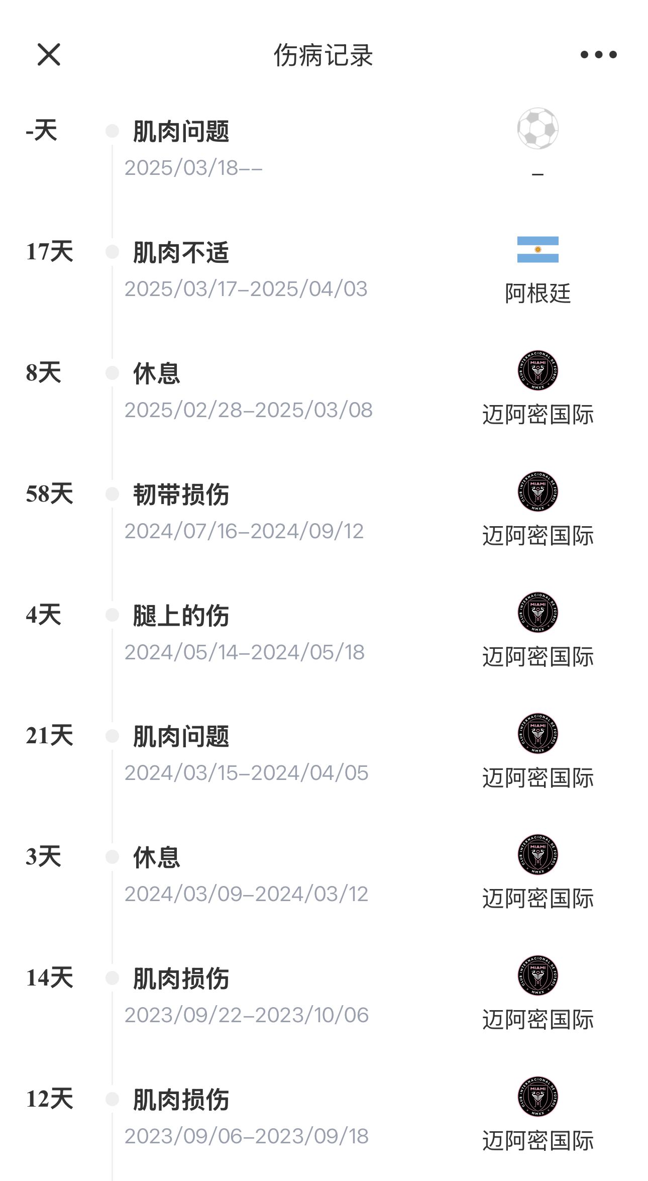 03月18日訊 阿根廷官方公布本期世預賽名單,37歲梅西因傷缺席,無緣對陣烏拉圭和巴西。邁阿密國際官方公布傷情,梅西內收肌輕度損傷。