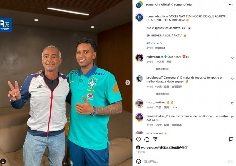 羅德里戈&拉菲尼亞&恩德里克做客電視節目,與羅馬里奧合影留念