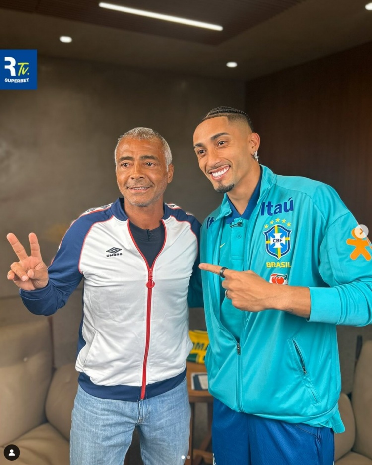 3月19日訊 巴西國家隊已經集結備戰新一輪南美世預賽,羅德里戈、拉菲尼亞以及恩德里克三人做客Roma?rioTV節目,與巴西傳奇球星羅馬里奧合影留念。